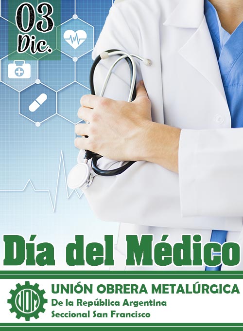 Desde la Unión Obrera Metalúrgica Seccional San Francisco saludamos a todos los médicos en este día y agradecemos la atención y los servicios que brindan.