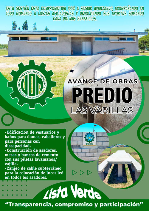Informamos a nuestros\as afiliados\as que continúan las obras en el predio\camping de Las varillas, a continuación lo detallamos: