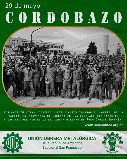 En mayo de 1969, el hartazgo social al autoritarismo de la dictadura de Juan Carlos Onganía se manifestó en una pueblada histórica que se denominó "el Cordobazo" y que tuvo un impulso fundamental: la unidad de los trabajadores y los estudiantes.