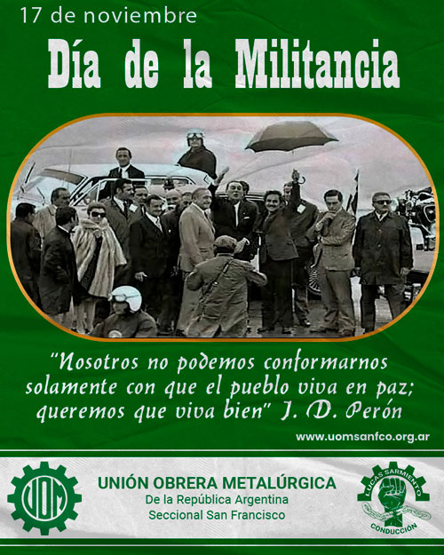 Por todos ellos recordamos cada 17 de noviembre el "Día del Militante", no para ponerle una vela al almanaque sino para levantar las banderas de todos aquellos que pensaron y actuaron en función de objetivos comunes con el único fin de tener un país con justicia social. Nuestro único deber es tratar de imitarlos todos los días.