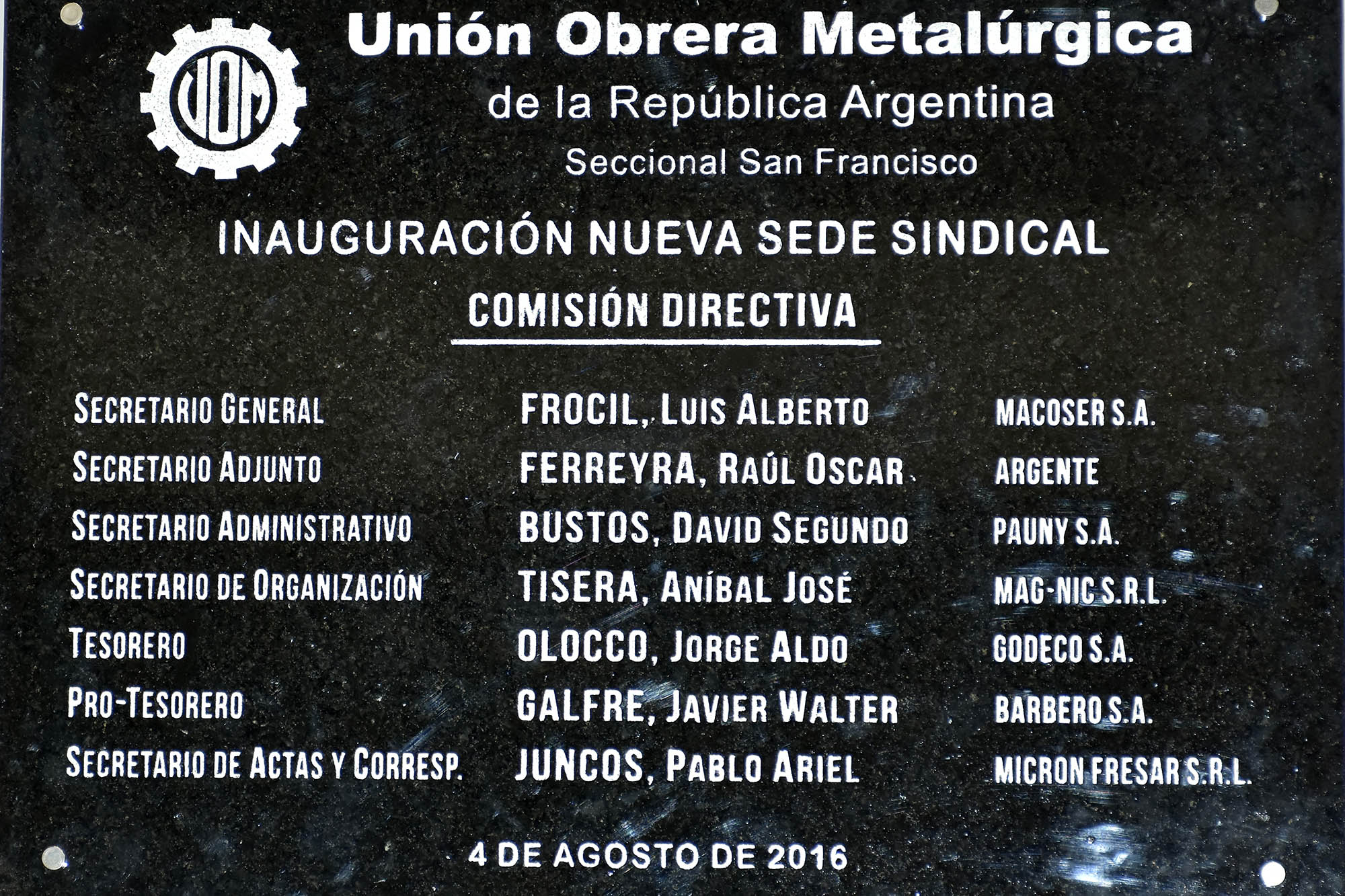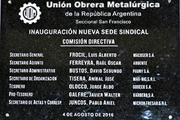 Con la presencia de miembros del secretariado nacional, se inauguró la nueva y moderna sede de la seccional San Francisco de la Unión Obrera Metalúrgica (UOM), ubicada en Sarmiento 535. Cabe mencionar que en ella se dejaron previstos tres consultorios internos para incorporar prevención en la salud.