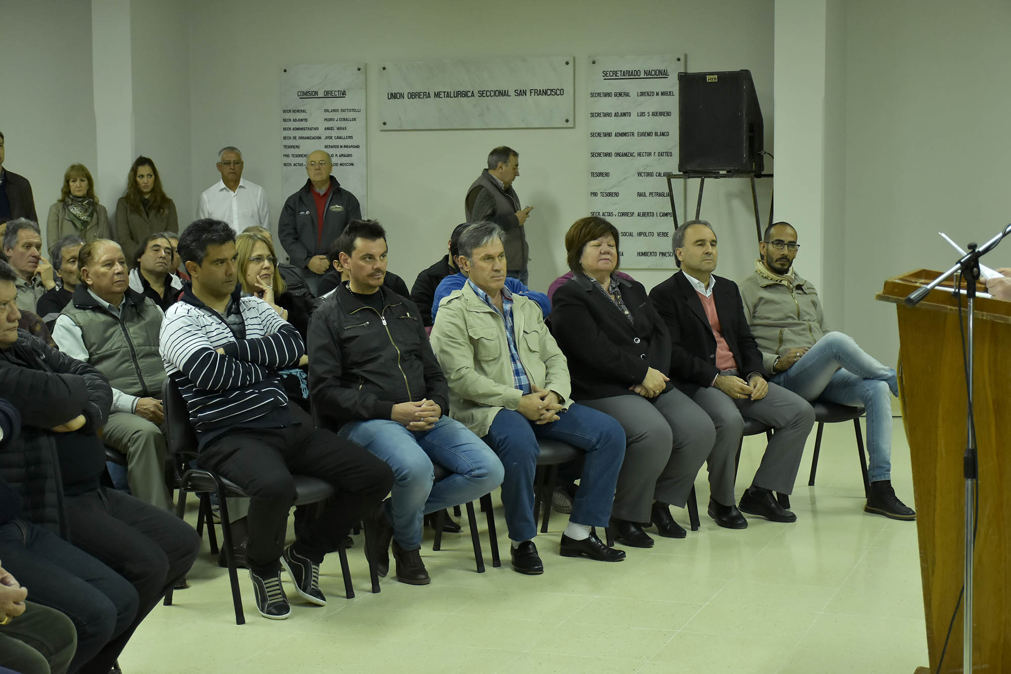 El acto inaugural contó con la presencia de la legisladora provincial Graciela Brarda; el secretario general de la seccional San Francisco de la UOM, Luis Frocil; concejales municipales; el secretario de prensa del secretariado nacional de la UOM, Abel Furlán y el secretario de Estadísticas y Análisis, José Luis Ortiz; secretarios generales de las seccionales Córdoba, Bell Ville, Río Cuarto, Río Tercero, Villa María, Santa Fe, Rafaela, Paraná, Villa Constitución, San Nicolás, El Trébol, Cañada de Gómez, Campana, Venado Tuerto, Las Parejas y María Juana; delegados y representantes sindicales de distintas organizaciones gremiales de la ciudad.